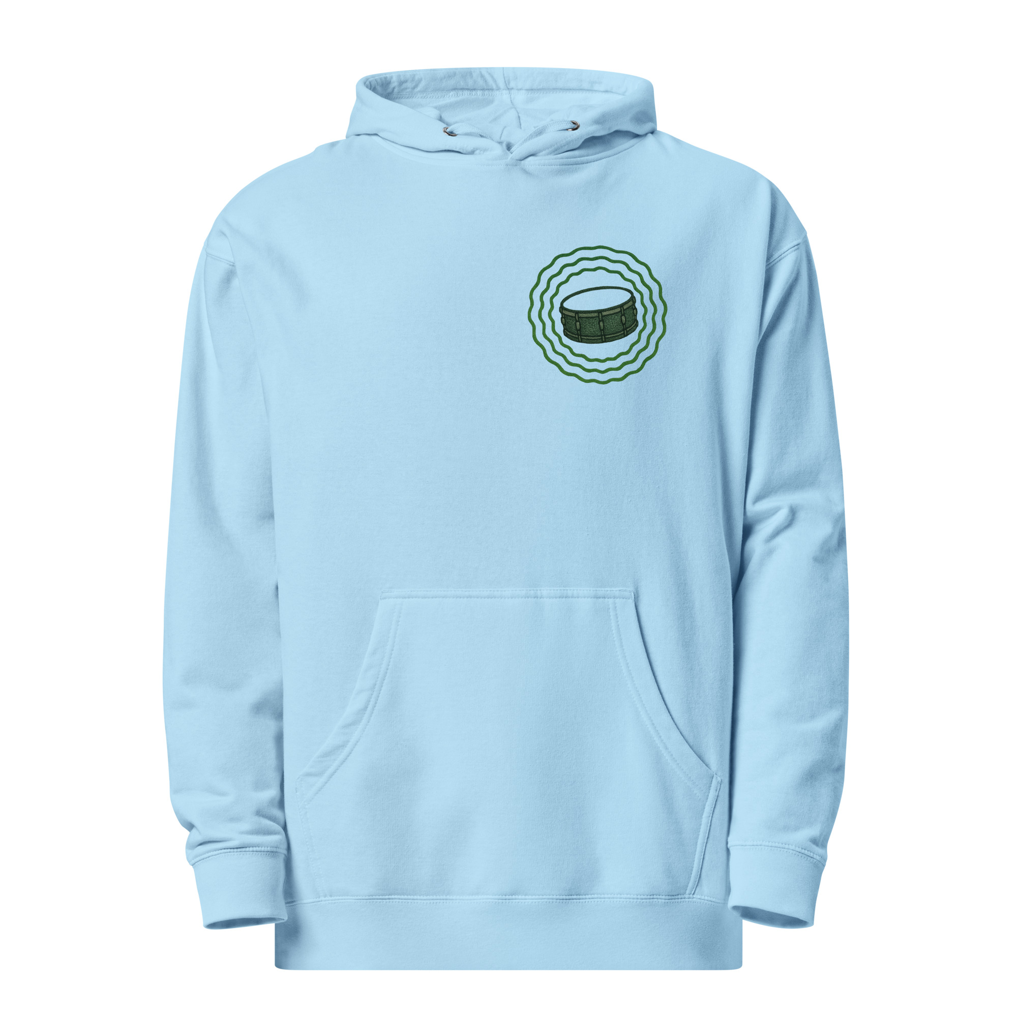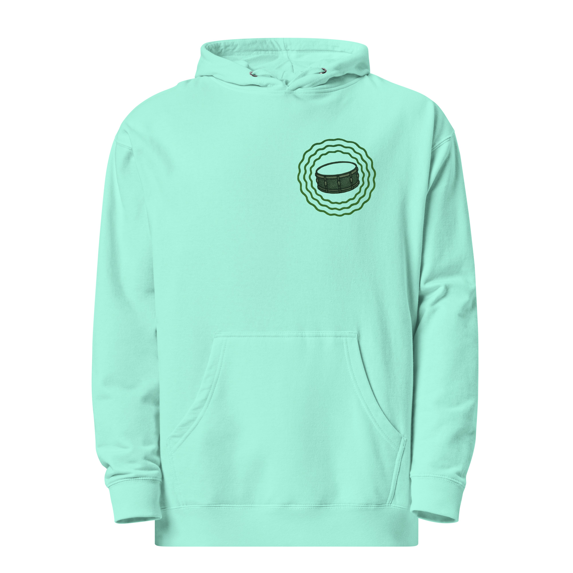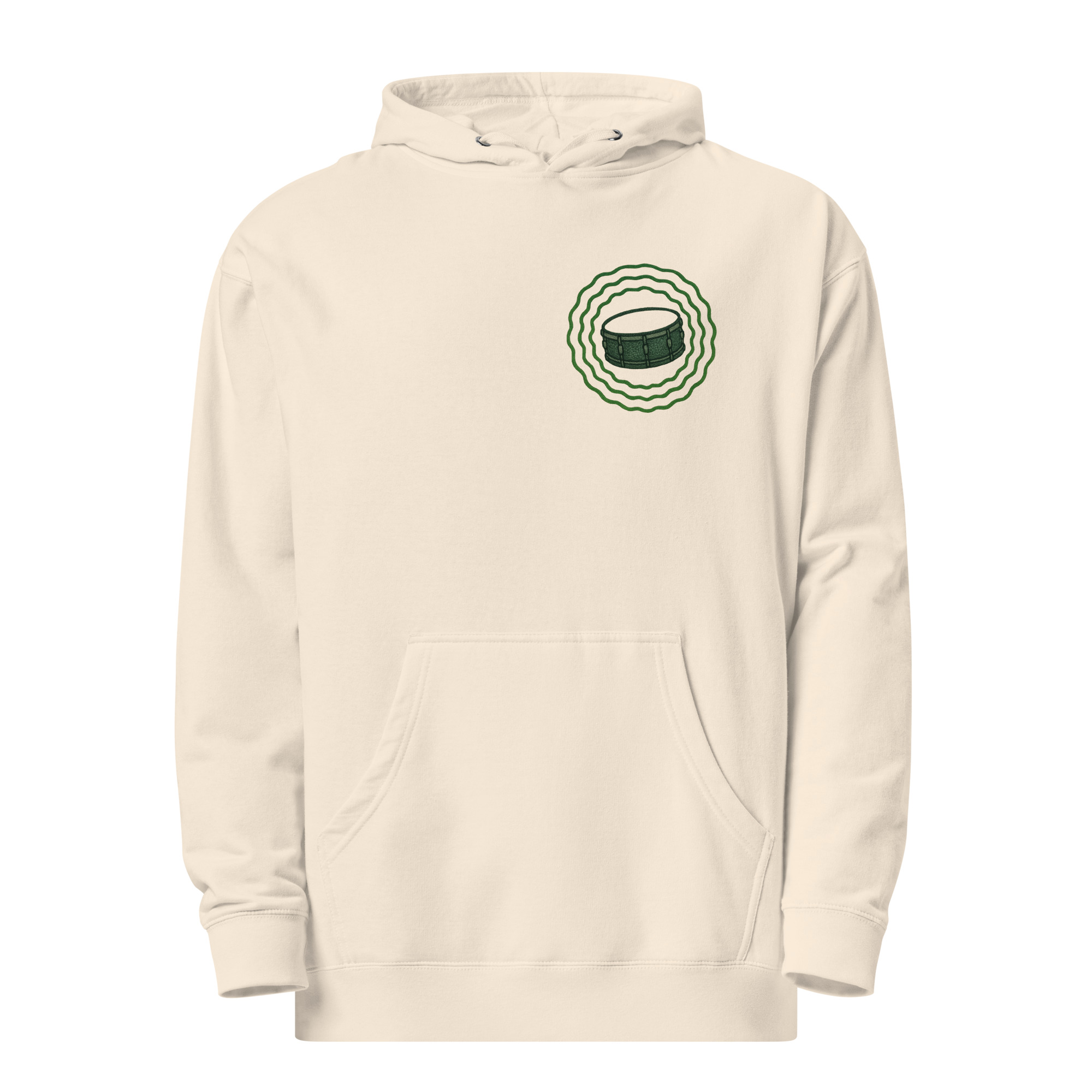 This embroidered-style digital artwork depicts a green snare drum suspended in rippling waves of sound — a visual metaphor for rhythm as a force hurdling throught the space-time. The concentric vibrations radiate outward like an ancient pulse, as if the drum were beating on its own, echoing those signals from the primitive universe. Minimal, symbolic, and hypnotic, this piece is perfect for drummers, musicians, rhythm-seekers, and anyone drawn to the mystical side of sound.